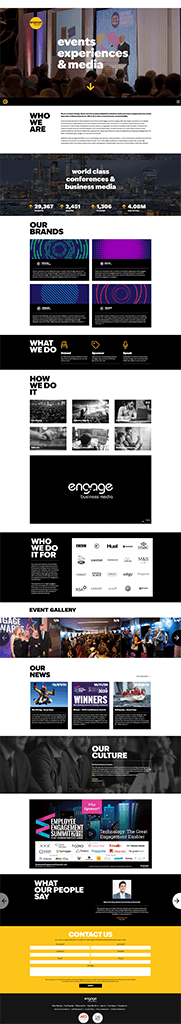 For over 8 years, we have designed and built websites for each of the Engage brands and awards. As innovators in technology and communications, EBM requires their websites to be continually managed and updated. We’ve ensured that we stay at the forefront of technology and design to meet their evolving needs.