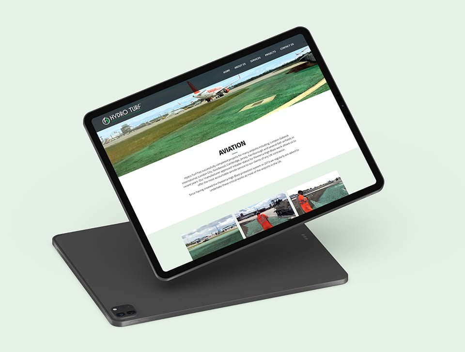 Hydro Turf, specialising in grass seeding and erosion control for sectors including aviation, rail, sports, construction, and private sectors, needed to modernise their outdated website. The primary goal was to improve mobile usability, as most inquiries came from mobile devices.