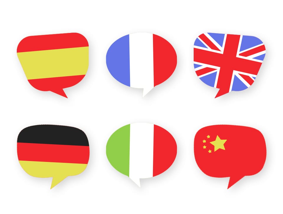 The new WordPress website is both eye-catching and user-friendly, featuring bold speech bubbles in various shapes and colours that create a fun and engaging motif. Square-cornered bubbles highlight service categories, rounded bubbles in brand colours serve as background graphics, and curvy bubbles with flags showcase the different languages offered.