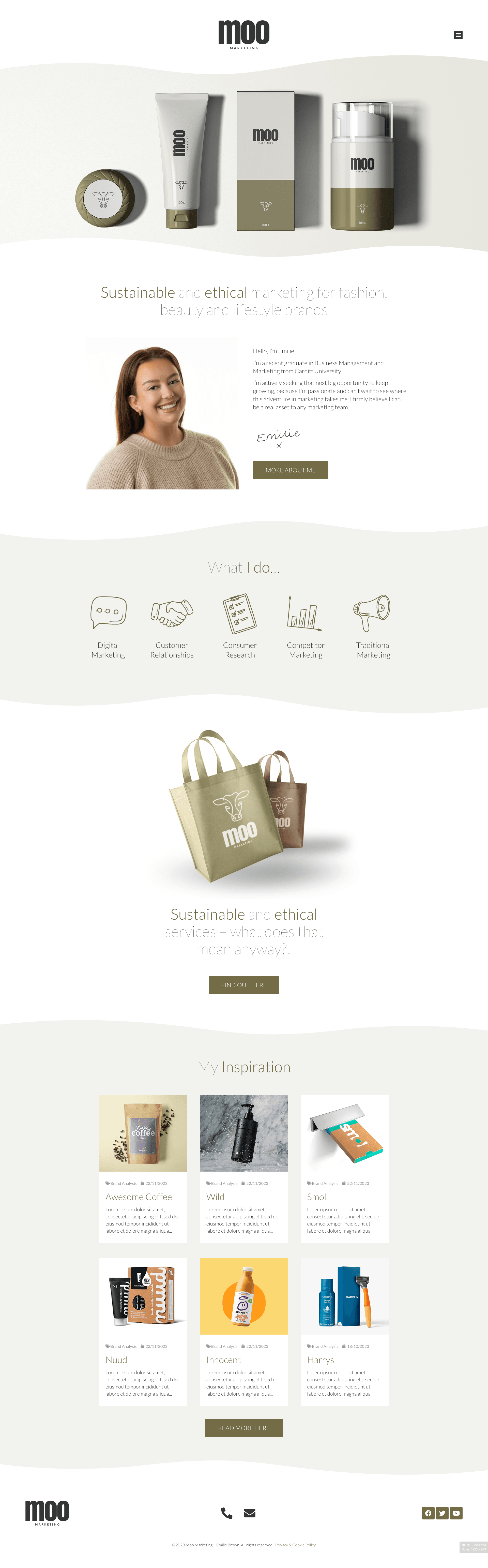 Blog: A dedicated area for Emilie to share her insights and updates on sustainable marketing, showcasing her expertise and thought leadership. We brainstormed brands that might align well and created images for Emilie to use when she was ready with longer-form content.