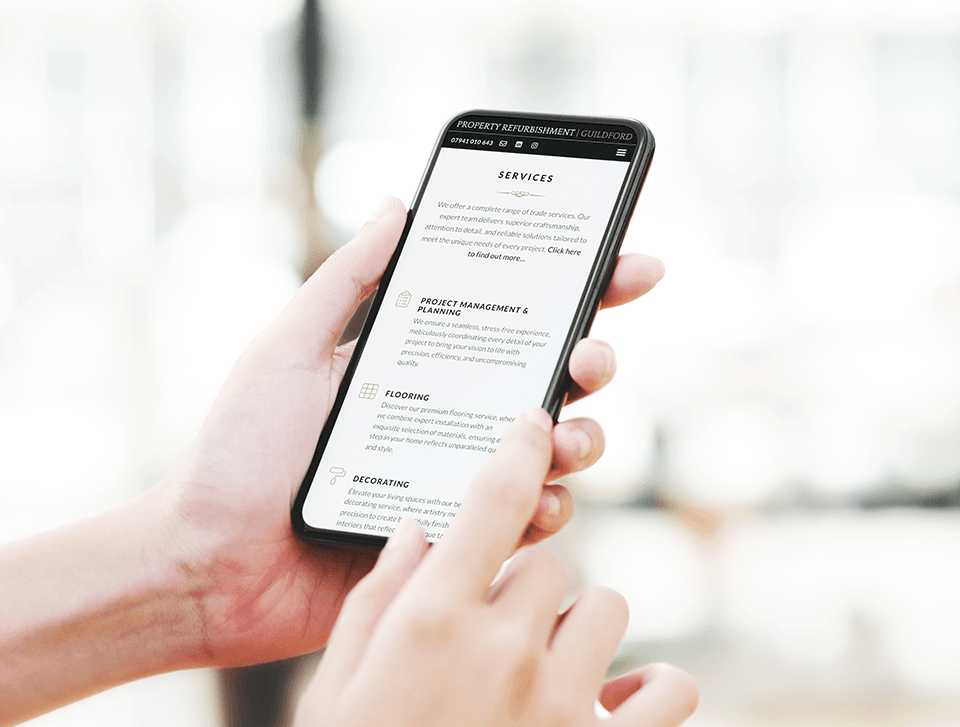 Websites for trades can often be quite bland, templated, and samey. However, given that David’s firm serves affluent Surrey homes, we knew we needed a high-end look that truly reflected the luxury and comfort clients expect. After all, the goal is to deliver a stunning, luxurious home, and the website should embody that standard.