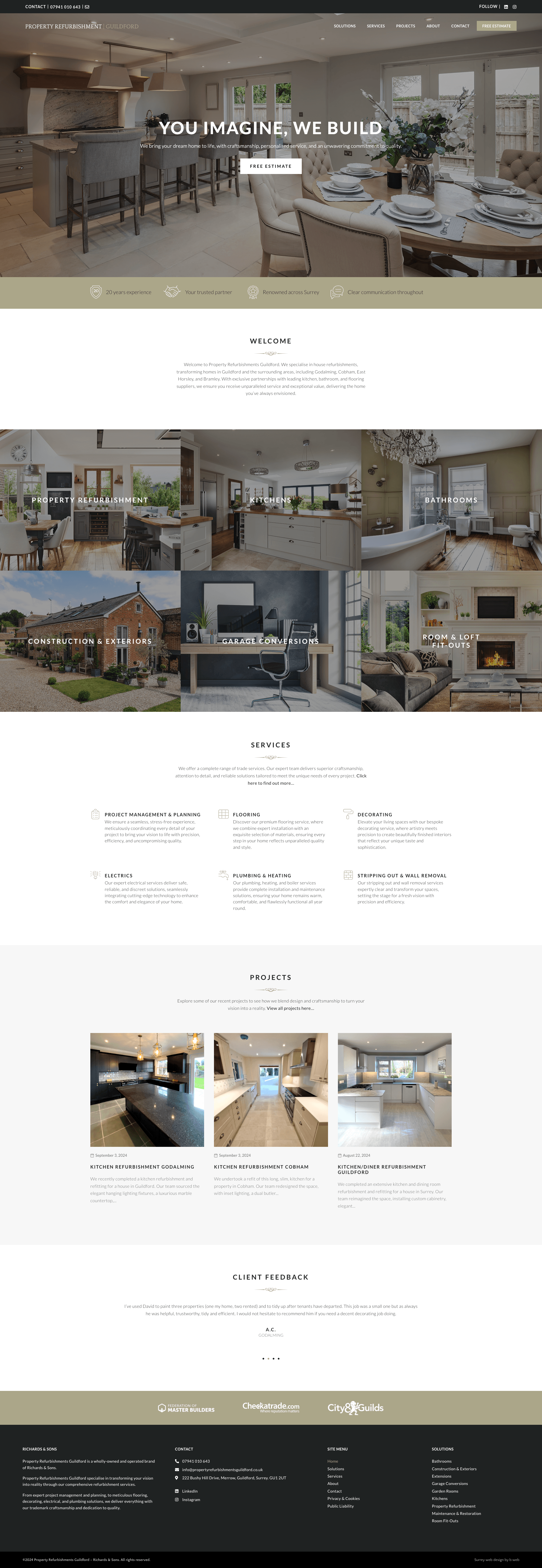 David Richards has been a client of b:web for around 20 years. Over time, his business has evolved significantly. Initially starting as a painter and decorator, David now owns Property Refurbishment Guildford, a company specialising in full property fit-outs with in-house project management across various trades. David needed a new website that would effectively generate leads, reflecting the expanded services and professional expertise his business now offers.