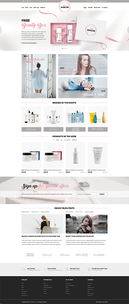 Shop Skincare, is a premier online store offering a diverse range of skincare products, including sun-creams and make-up from over a dozen brands. Targeting women in their mid-30s and above, Shop Skincare is the brainchild of beauty industry expert and QVC presenter, Abi Cleeve. This is the second website that we have developed for Abi Cleve, the first one being SkinSense.